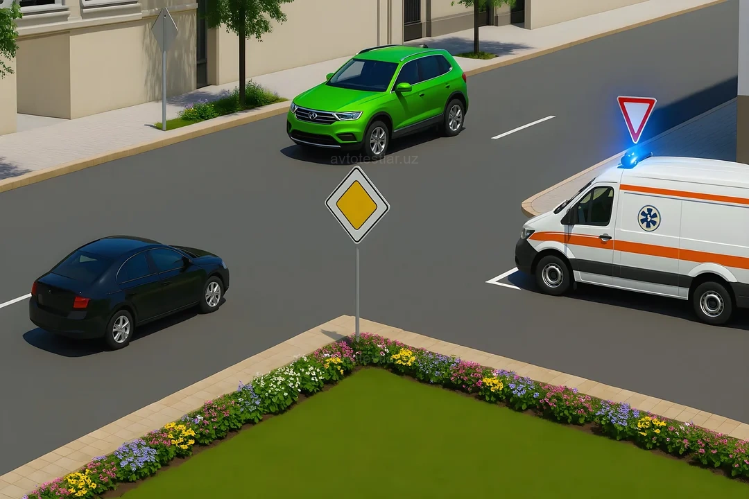 Специальное транспортное средство с включенными синими проблесковыми маячками и специальным звуковым сигналом, проедет перекресток: