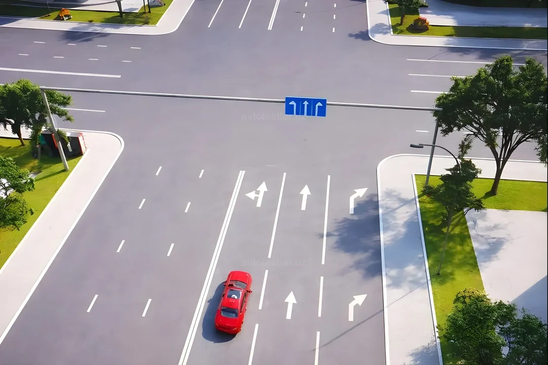 в каких направлениях разрешено движение водителю красного автомобиля?