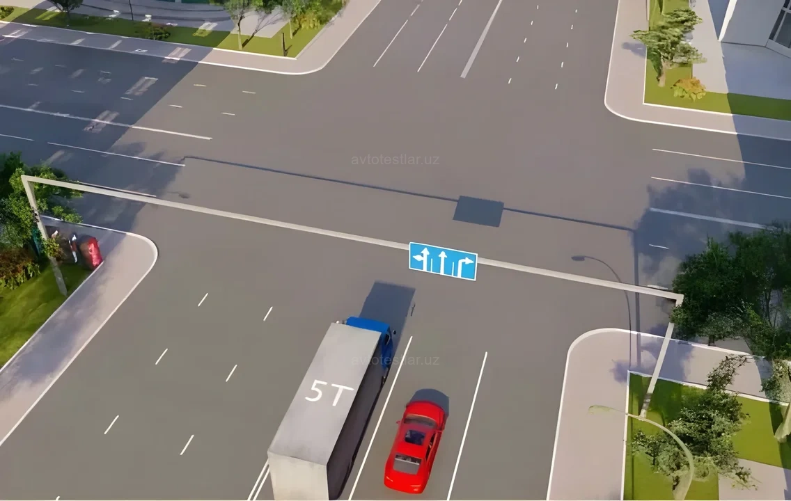 AКрасному автомобилю –прямо, синему автомобилю- прямо и налево