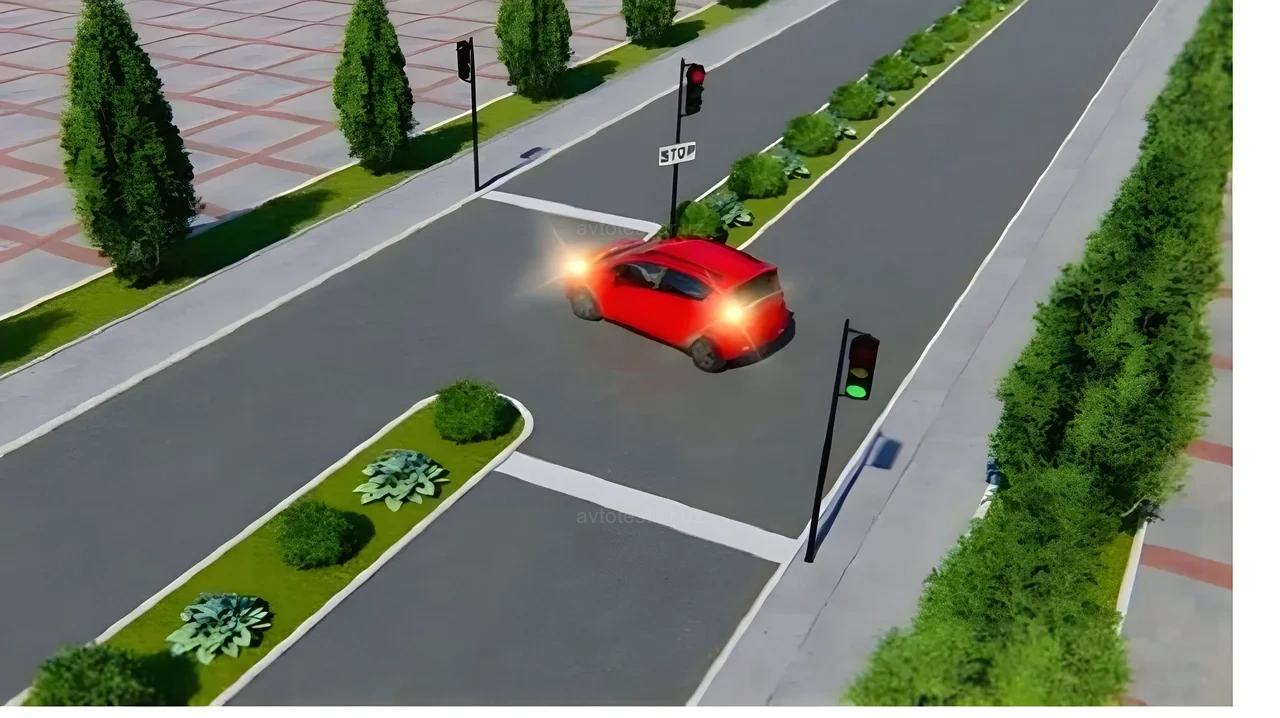 BВы должны остановиться перед знаком и дождаться разрешающего сигнала светофора