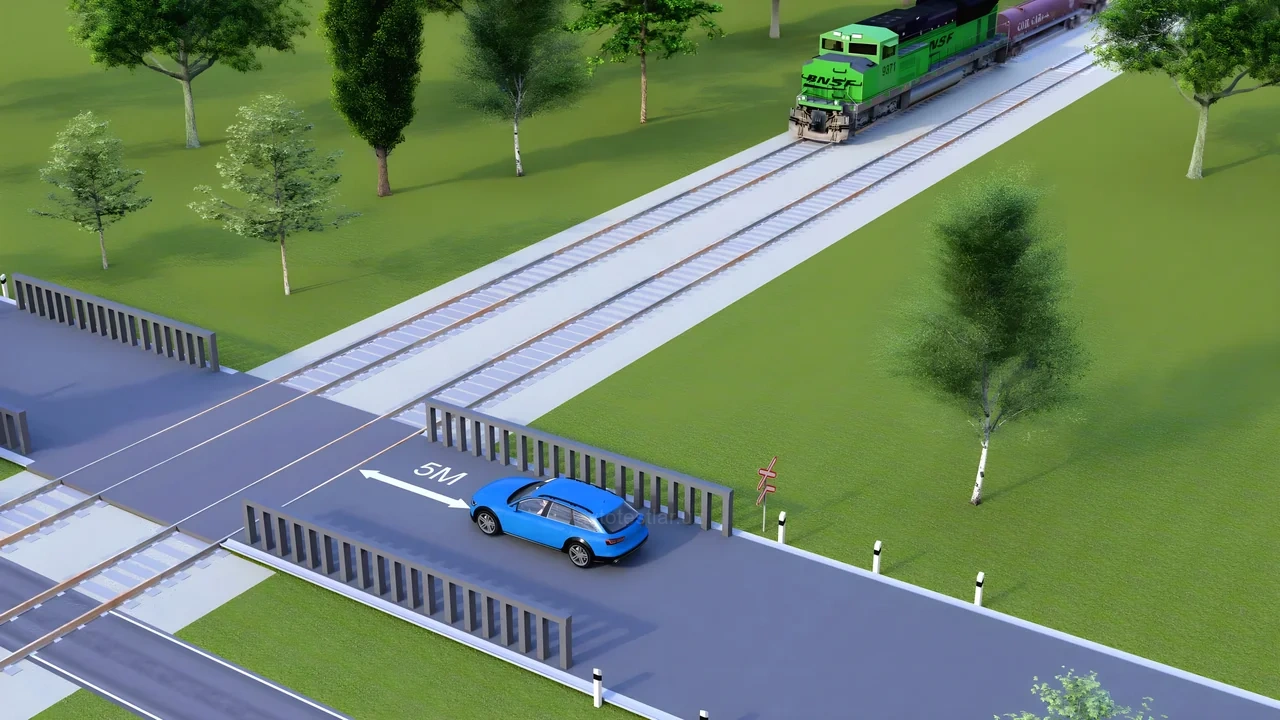 Правильно ли водитель остановился для предоставления преимущества поезду?