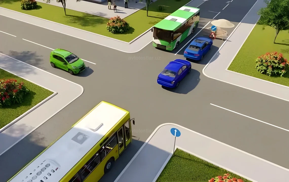 Разрешается ли выезд на перекресток водителю желтого автобуса?