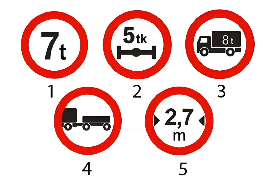 Какой знак запрещает движение грузового автомобиля с прицепом, если суммарная разрешенная максимальная масса автомобиля и прицепа равна 7 т?