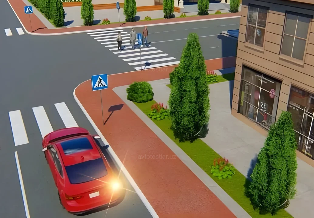 Как должен поступить водитель; поворачивая направо в показанной ситуации?