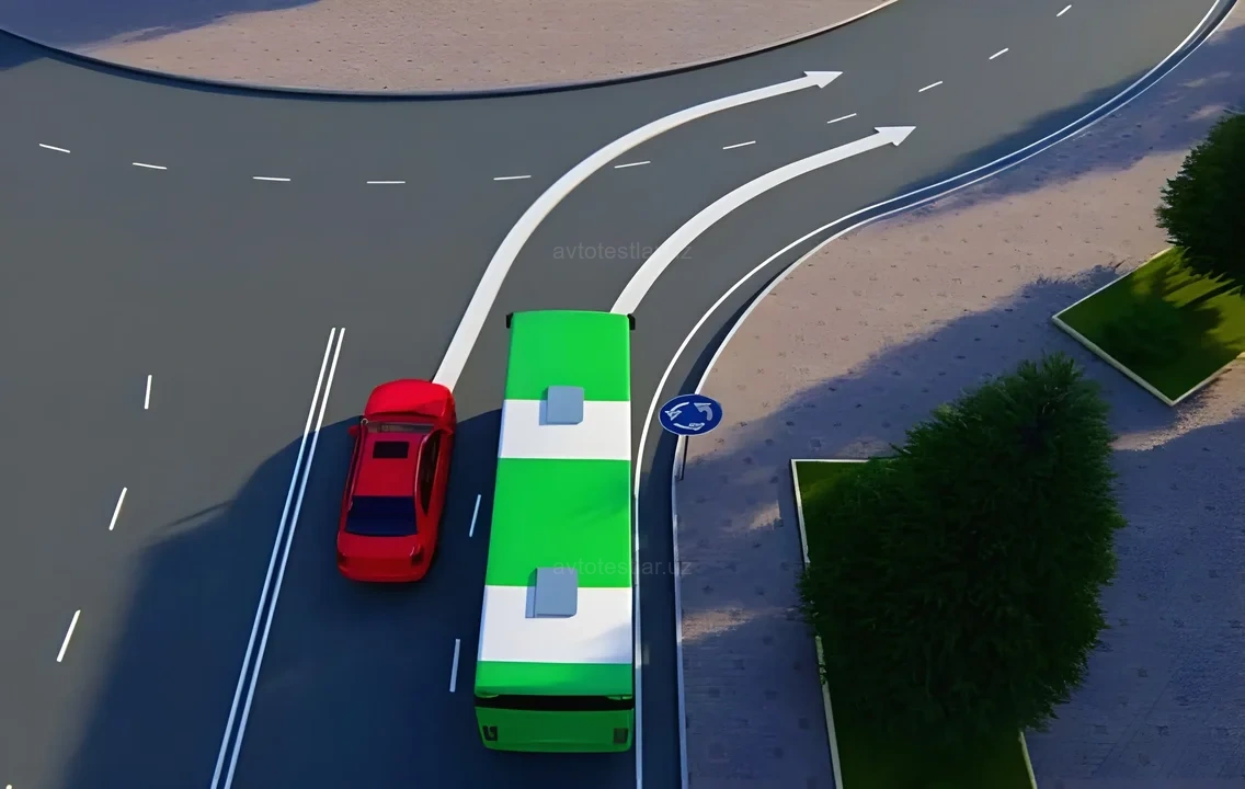 Водитель какого транспортного средства правильно въезжает на пересечение с круговым движением?