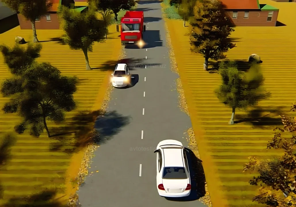 Должны ли Вы уступить дорогу встречному грузовому автомобилю?