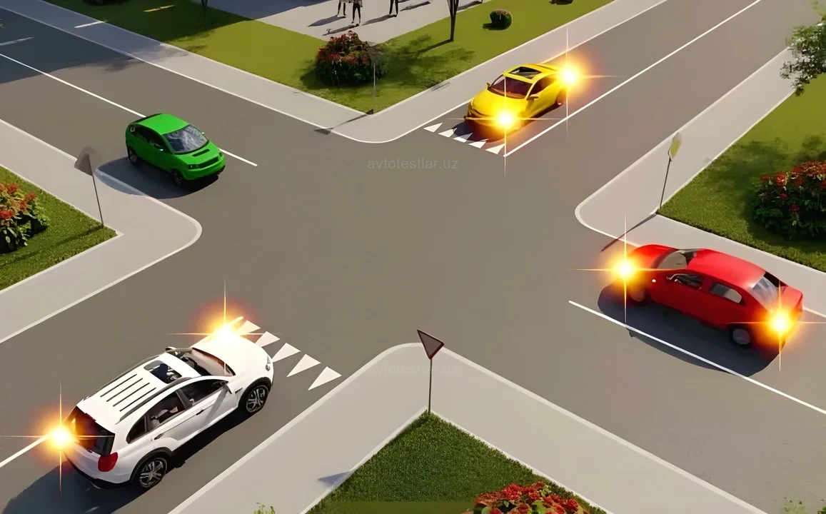Белый автомобиль одновременно с желтым