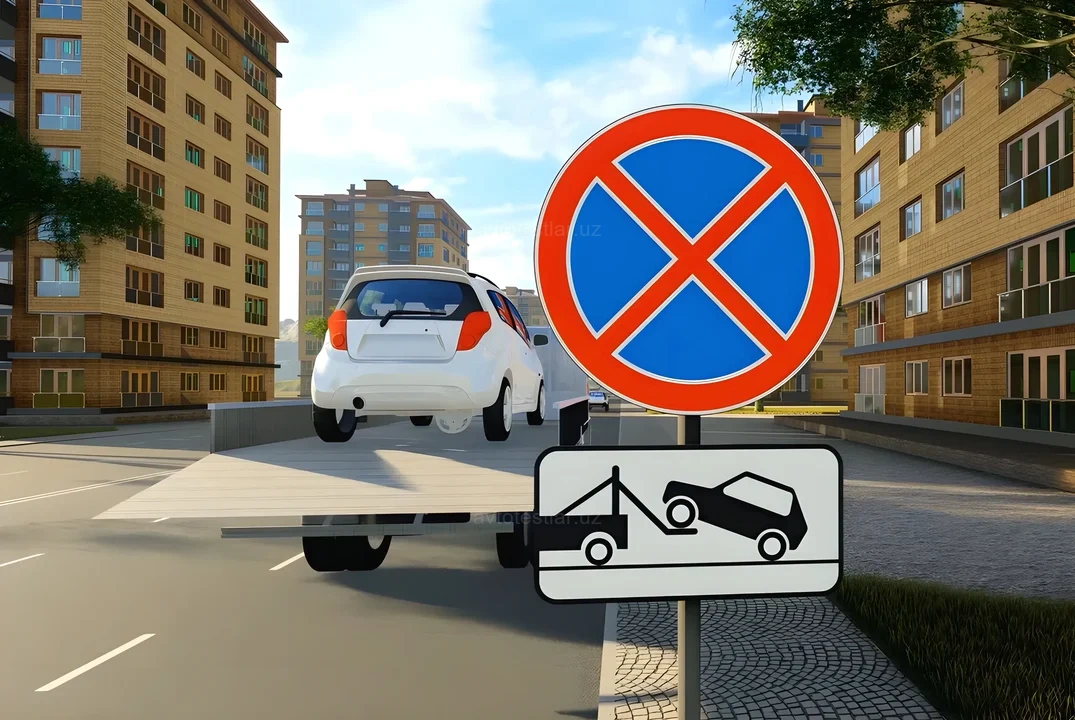 CУказывает на принудительную эвакуацию автомобилей, остановившихся в зоне действие знака