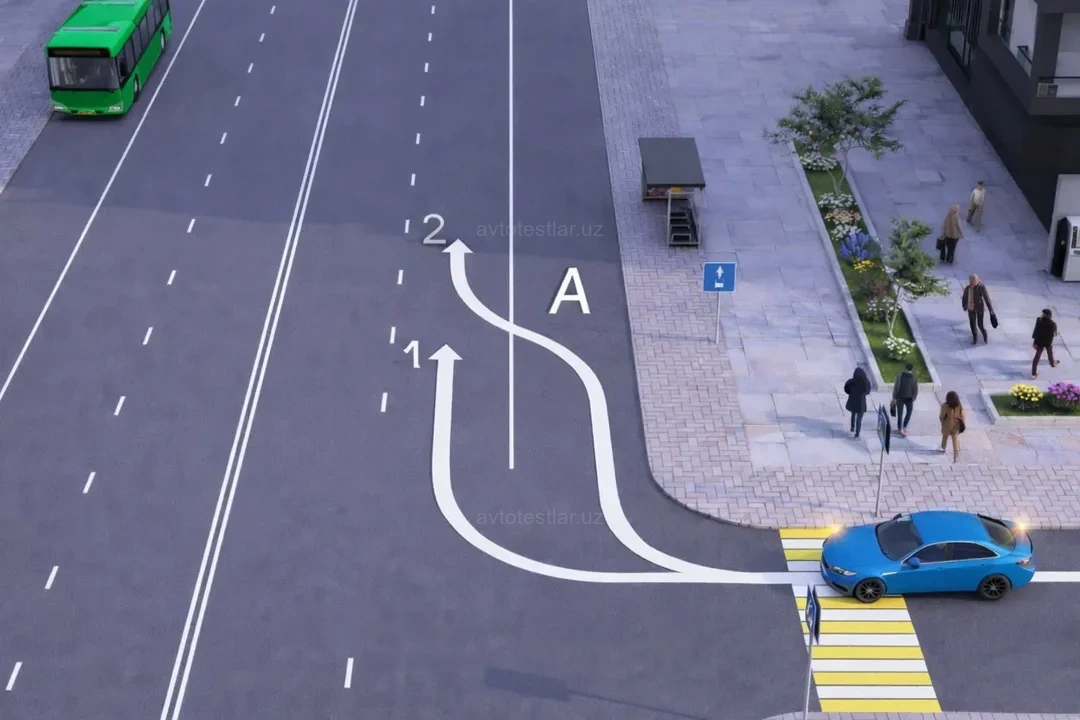 По какому направлению водитель красного автомобиля выполняет поворот правильно?