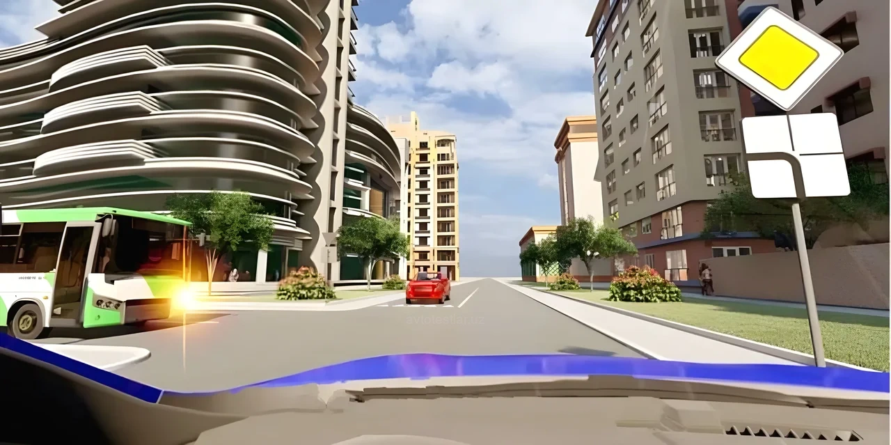 Кому водитель автобуса должен уступить дорогу на этом перекрестке?