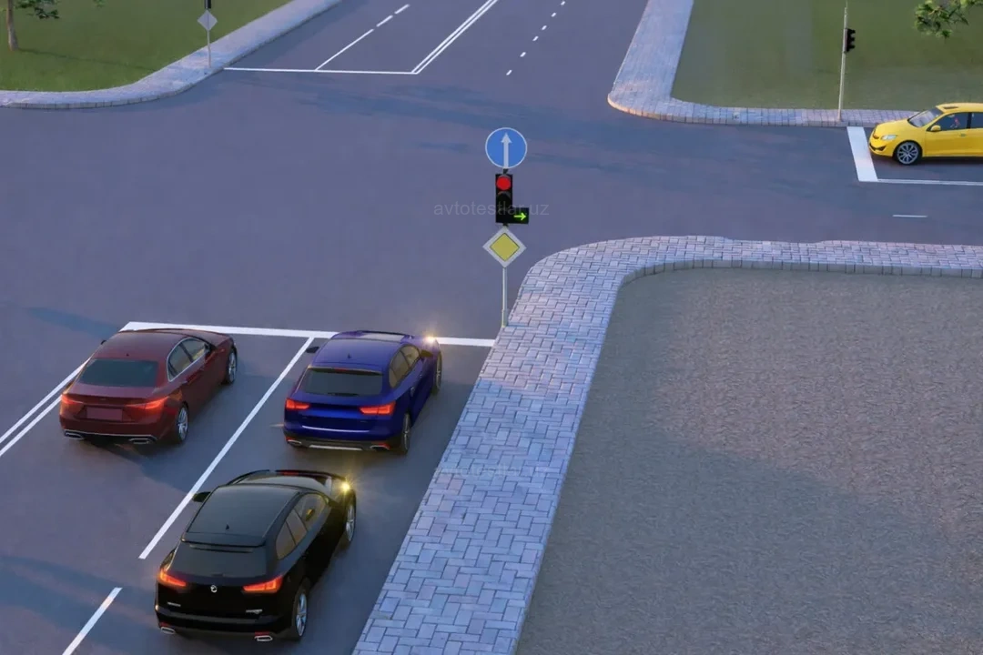 Разрешен ли водителям синих и черных автомобилей совершать правый поворот?