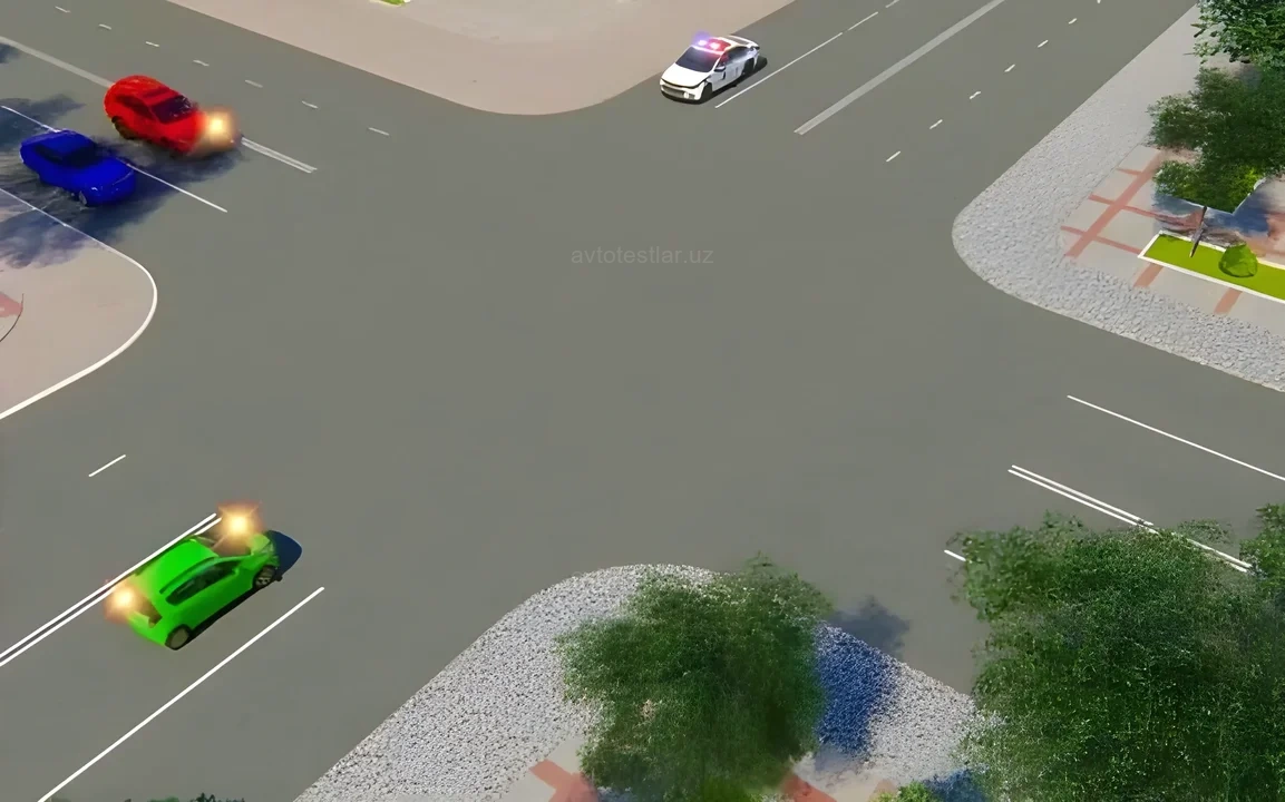 Синий автомобиль проедет перекресток: