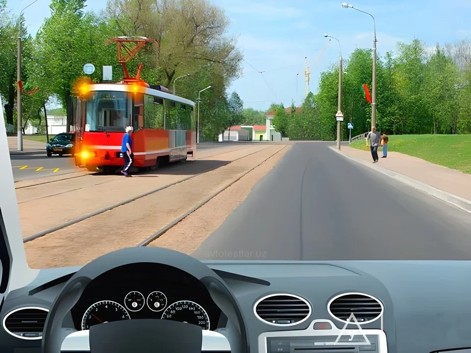 Разрешается ли переходить дорогу перед трамваем, как показано на рисунке?