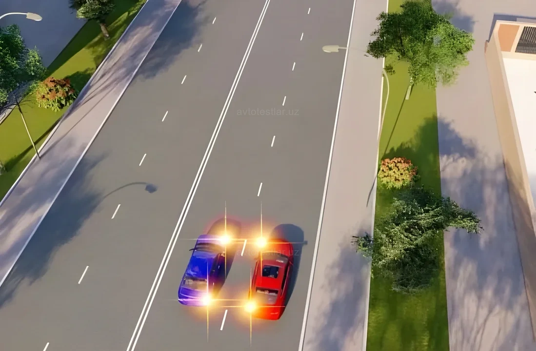 CСиний автомобиль, т.к. красный изменяет направление движения влево