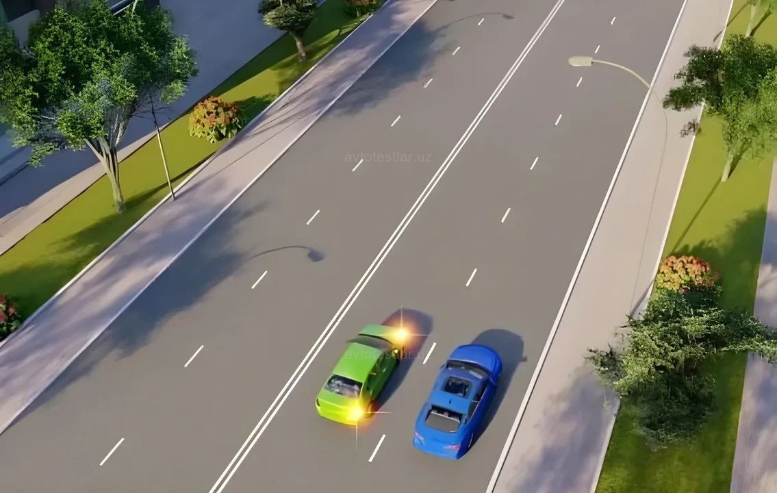 CОбязан уступить дорогу синему автомобилю; движущемся попутно в прямом направлении