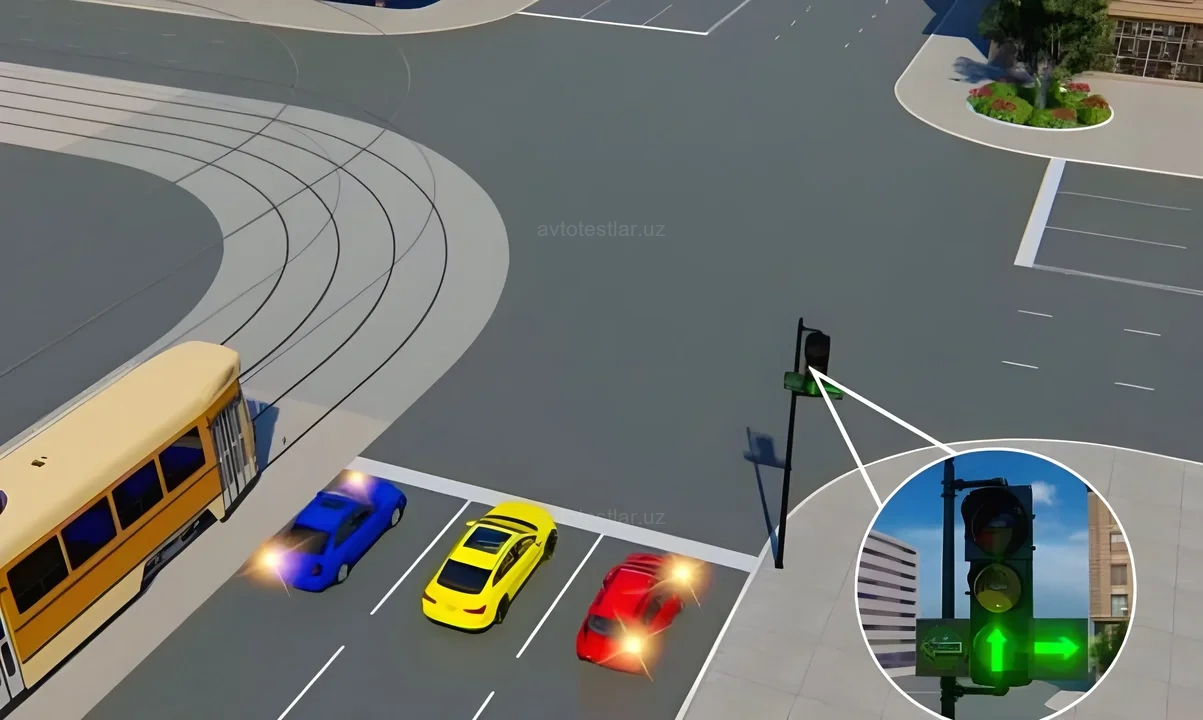 Каким транспортным средствам разрешено движение при этом сигнале светофора?