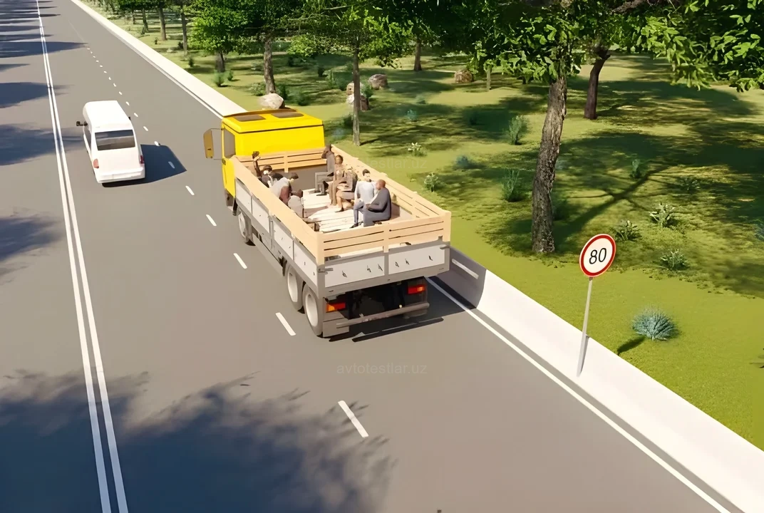 Қайси транспорт воситасининг ҳайдовчисига белгида кўрсатилган тезлик билан ҳаракатланишга рухсат берилган?