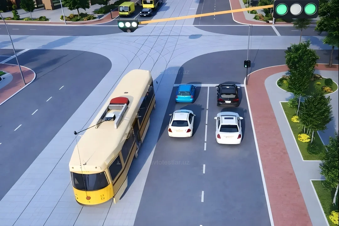 Ушбу светофор трамвайга кайси йуналишда харакатланишга рухсат беради?