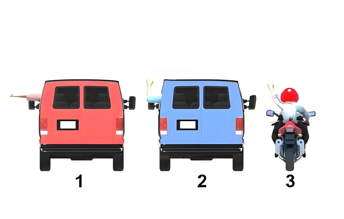 Qaysi rasmda haydovchi chapga burilish haqida ogohlantirish ishorasini bermoqda?