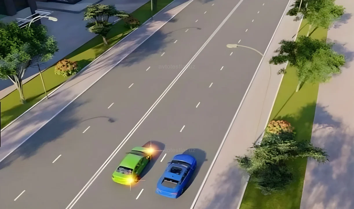 Ushbu vaziyatda siz o'ngdagi bo'lakda harakatlanayotib sizning bo'lagingizga qayta tizilmoqchi bo'lgan transport vositasiga yo'l berishingiz kerakmi?